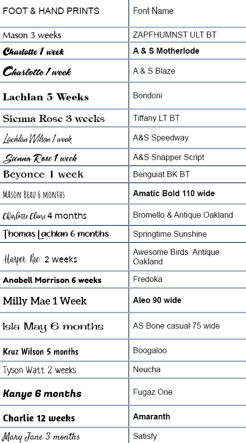 Our recommended fonts work beautifully on our foot and handprints.